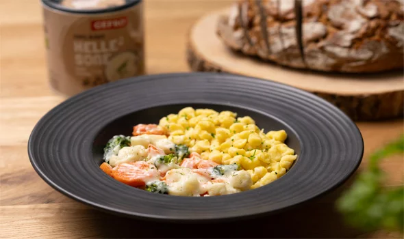 Die perfekte Soße, wenn’s schnell gehen muss, aber trotzdem richtig gut schmecken soll: Die GEFRO Helle Soße EDEL & GUT ist in nur einer Minute zubereitet und voller Geschmack. Für alle, die ihren Alltag gerne lecker und unkompliziert verfeinern. Ohne unnötige Zutaten, aber mit echtem Genuss.