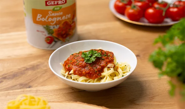 Variiere nach Lust und Laune: Serviere GEFRO Bio Sauce Bolognese mit Deiner Lieblingspasta: Vegane Spaghetti Bolognese stehen in nur 20 Minuten auf dem Tisch.